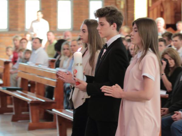 Tak było 5 czerwca 2016 r. w naszej Parafii, gdy podczas uroczystej Mszy Świętej 86 osób przyjęło z rąk Ks. Infułata Jana Górnego sakrament Bierzmowania. Kandydaci wyrazili pragnienie, aby Duch Święty umacniał ich do mężnego wyznawania wiary, a tym samym zobowiązali się swą wiarę pielęgnować, pogłębiać, bronić i według niej żyć. Już od września podjęli budowanie przyjaźni z Jezusem. Uczestniczyli w comiesięcznych katechezach i w liturgii Kościoła. Szczególnym punktem przygotowań były dwudniowe rekolekcje, podczas których wielu młodych ludzi doświadczyło prawdziwej obecności i bliskości Jezusa i Jego bezwarunkowej miłości.